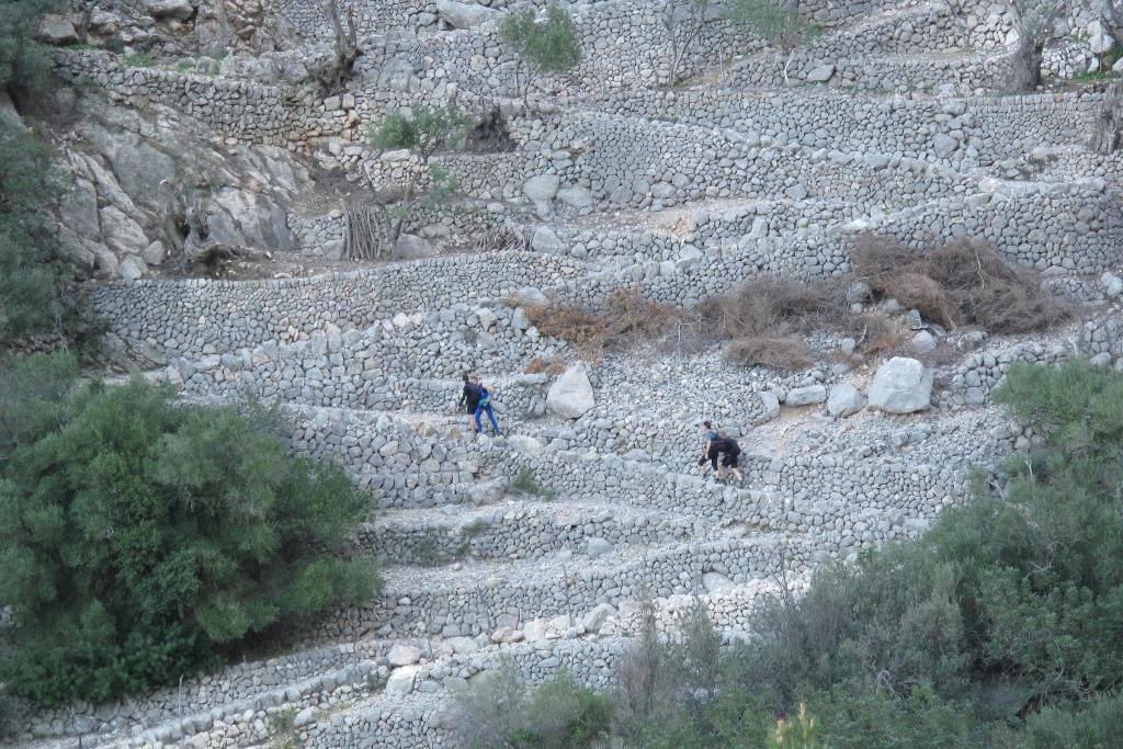 The Camí des Barranc and Camí Vell trails, declared a Site of Cultural Interest, cross a landscape of cliffs and ravines where humans used stone to build terraces, huts, and paths for survival. In 1986, the school of “margers” (dry stone builders) was founded to preserve this valuable example of traditional Mallorcan dry stone architecture and revive this ancestral craft.
